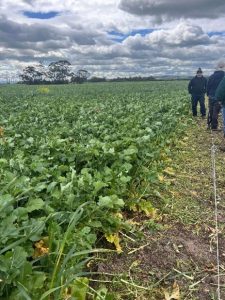 First stop was Dean Turner at Yannathan. Dean gave the group a very valuable insight into transitioning from managing a large farm of over 1,000 cows, to 50/50 share farming, then onto leasing properties. He was very open about the pros and cons of undertaking these business models. He had a very impressive turnip crop that he had planted in May- the cows have only begun to graze it over the past two weeks.